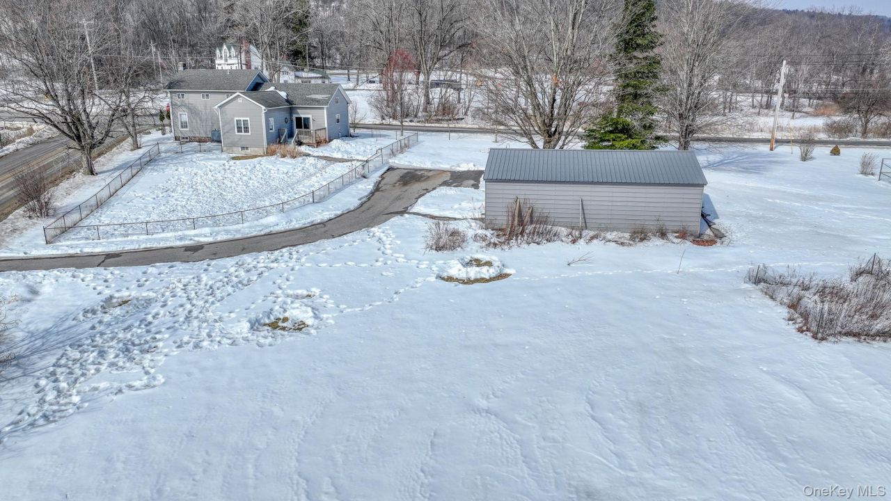 TIMELESS ELEGANCE - MODERN COMFORT - EFFORTLESS LIVINGNestled within the highly regarded Minisink Valley Central School District, this exquisitely updated vintage residence masterfully blends historic charm with refined contemporary living. THOUGHTFULLY RENOVATED, this home offers warmth, sophistication, and effortless functionality. The heart of the home is the stunning kitchen, featuring SOARING CEILINGS with STRIKING EXPOSED BEAMS, rich GRANITE countertops, STAINLESS STEEL APPLIANCES and a GENEROUS CENTER ISLAND that invites large gatherings. Sliding glass doors open to the outdoor deck, making it easy to enjoy morning coffee outside or host unforgettable evenings. Natural light fills the bright, open living spaces, creating a warm and welcoming atmosphere. A decorative electric fireplace adds charm and ambiance, while the thoughtful layout offers three comfortable bedrooms - including a CONVENIENT FIRST FLOOR BEDROOM- and TWO FULL BATHS. Designed for both everyday living and entertaining, this home also includes CENTRAL AIR (split system), a full basement with excellent storage or future possibilities, a NEWER WELL PUMP, and a separate laundry area with NEWER WASHER/DRYER. Outside, you'll find gracious FRUIT PRODUCING PEAR TREE, lovely colorful poppies, FIRE PIT, a spacious FENCED-IN YARD for relaxing, playing, or entertaining, along with a VERY OVERSIZED DETACHED GARAGE and plenty of additional parking. This is more than just a home - it's a place to gather, grow, and create lasting memories. A rare opportunity to own a vintage home reimagined for today's lifestyle - move-in ready and designed to impress!
